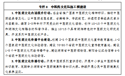 6.中醫(yī)藥文化大力弘揚。中醫(yī)藥文化宣傳形式更加多樣化,陣地建設不斷加強,具有湖湘特色的中醫(yī)藥科普作品和文化產品更加豐富,全民中醫(yī)藥健康文化素養(yǎng)不斷提升,中醫(yī)藥傳承創(chuàng)新發(fā)展的文化氛圍更加濃厚。