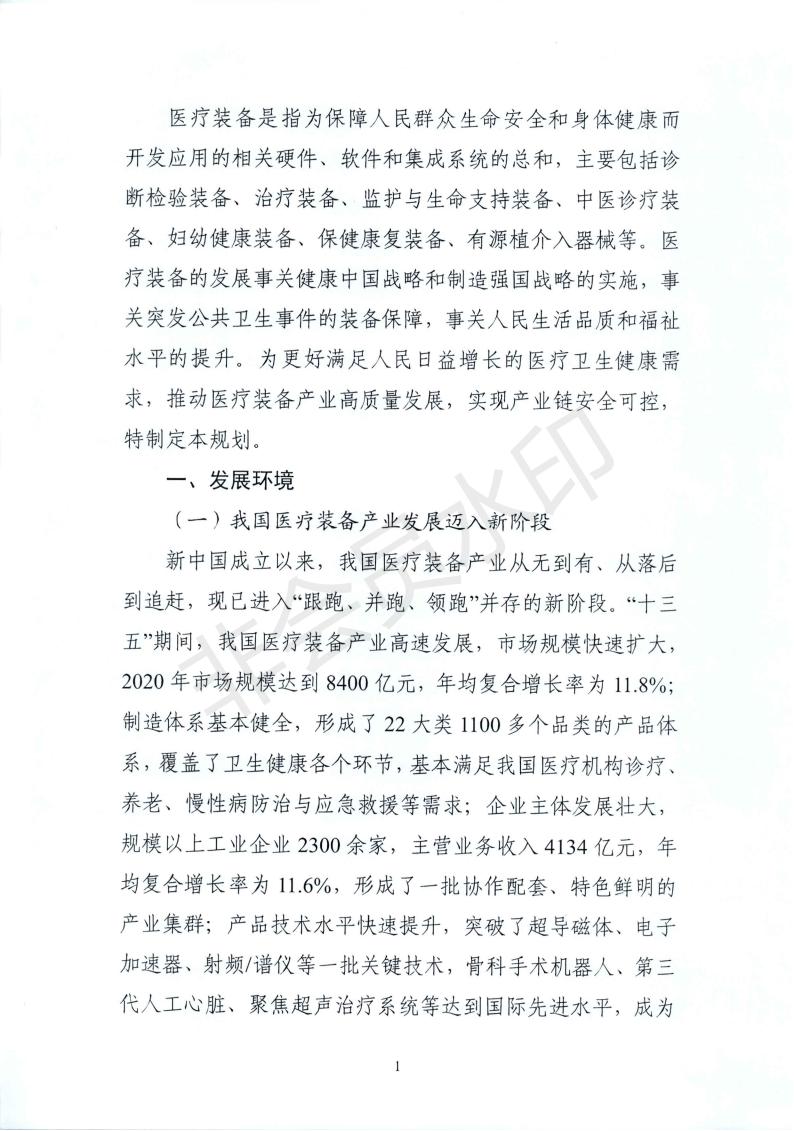 現將《“十四五”醫療裝備產業發展規劃》印發給你們,請結合實際,認真貫徹實施。