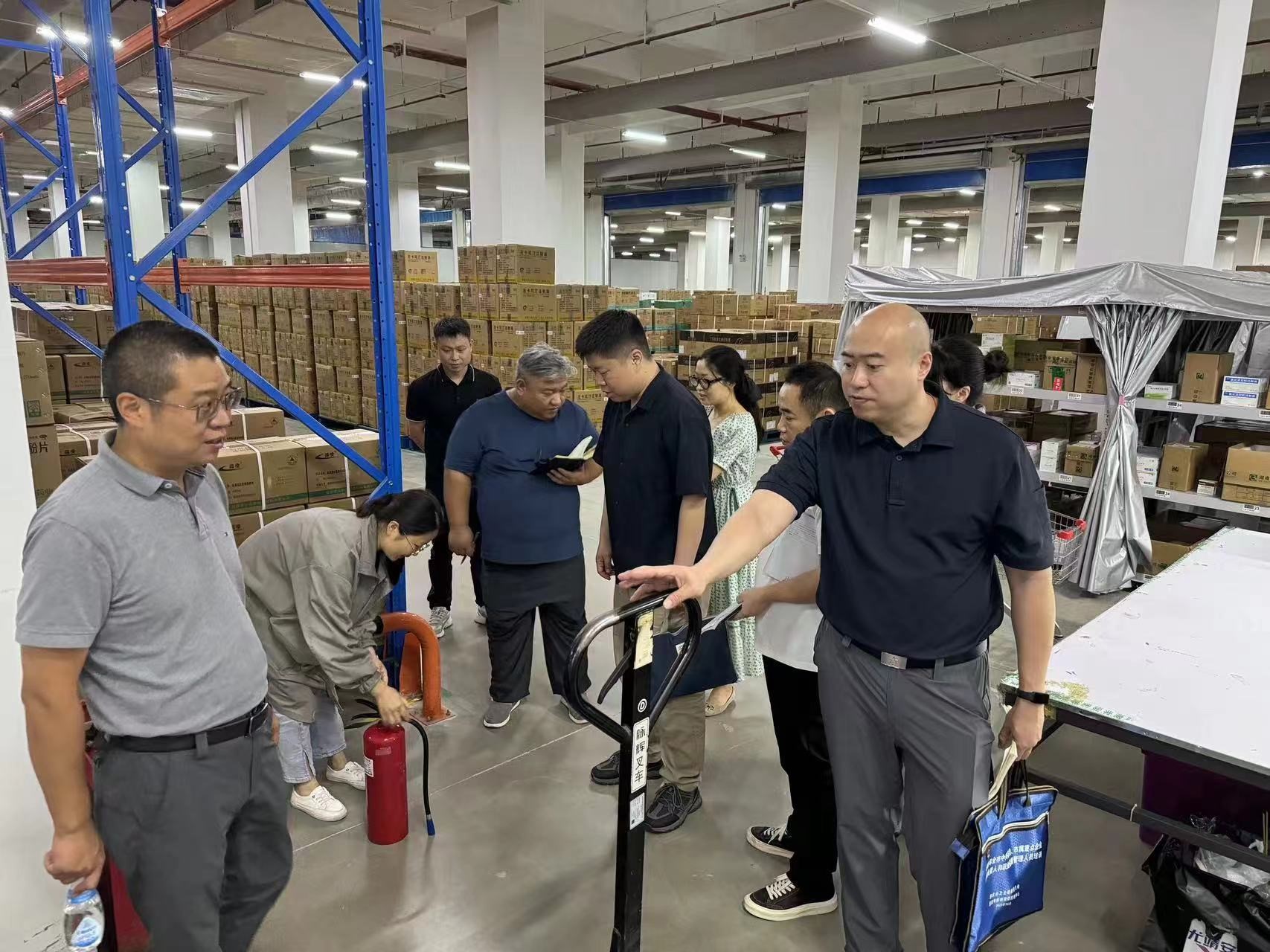 檢查組采用現場檢查和查看資料兩種方式進行檢查,根據《2024年上半年安全環保職業健康檢查及考核表》的內容,首先檢查倉房及辦公區現場的安全情況、重點部位、關鍵崗位、公共設施等現。約傲降チ嬌、操作規程、標志標識建立情況,并采取現場提問方式問詢滅火器操作方法和緊急情況下如何逃生等消防安全知識。同時查閱了組織機構、安全管理制度、隱患排查、應急預案及演練、人員培訓、安全生產月系列資料以及安全會議記錄、日周月檢查記錄等各項基礎資料。