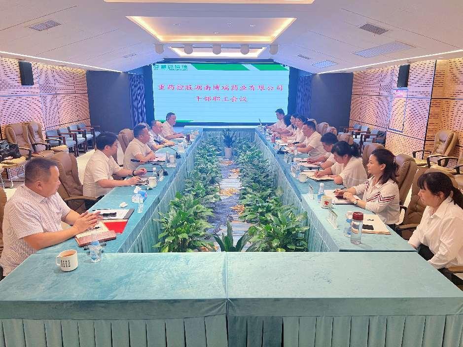 8月7日上午,集團黨委副書記、總裁劉偉蒞臨尊龍凱時人生就是搏控股湖南博瑞藥業有限公司干部職工會議并開展調研,集團副總裁、南方銷售總部總經理朱萸,組織與人力資源部部長劉宗前及南方銷售總部二級專務康華升陪同出席。會議由集團組織與人力資源部部長劉宗前主持,重控湖南博瑞領導班子成員、中層干部、職工代表參加本次會議。